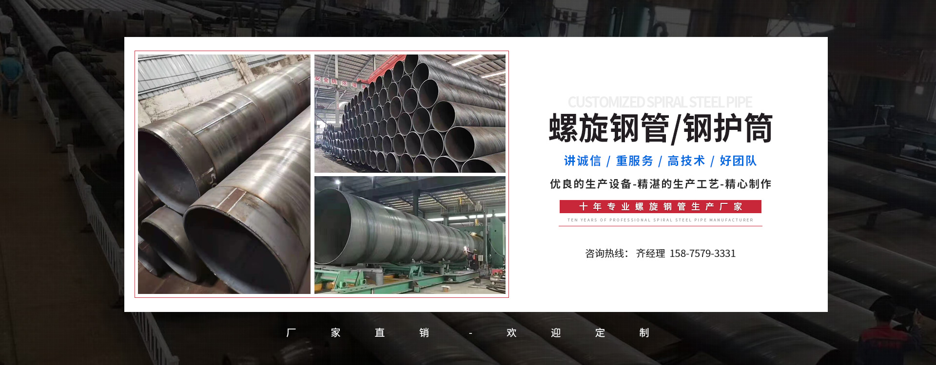專注生產直徑φ219-φ3600mm,壁厚φ5.0mm-26mm等各種規格螺旋鋼管、防腐鋼管,厚壁螺旋鋼管,雙面埋弧焊螺旋鋼管,大口徑螺旋鋼管,密封性卓越、耐酸堿、無毒無臭、防塵、防潮、防掉漏質量保證,價格優惠。